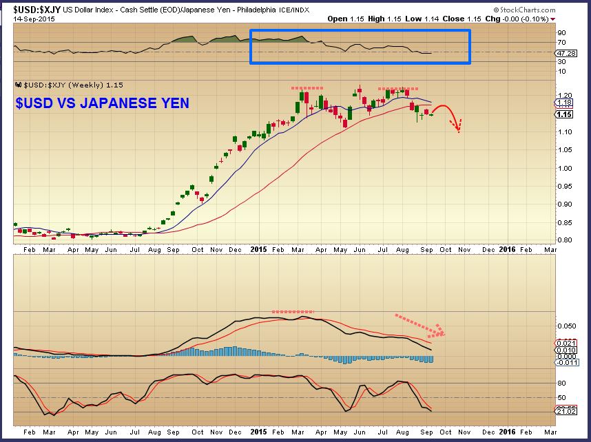 USD : YEN-  The USD double topped vs the Yen on a weekly basis.