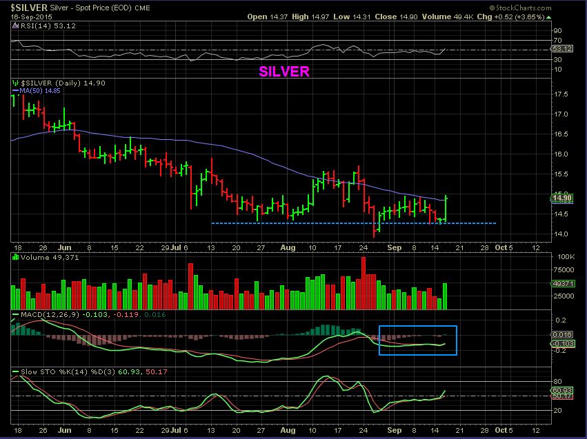 Some may be wondering, “Is it too late to buy?” No, we’re just getting going. “Should I wait until after 2 p.m. Fed release, in case there is volatility?” I actually think that someone might wait to ‘add’ to a current position in case we get a post -Fed pullback, but just taking a position here if one doesnt have one may be best. Look at the Silver chart above. Those lows should hold and it may just move higher now that it’s above the 50sma. MANY stocks are just getting going, so I am going to come back later in the morning and post a few charts of some set ups. There are WAY TOO MANY for me to post them all, so I will just show you what I am looking at.