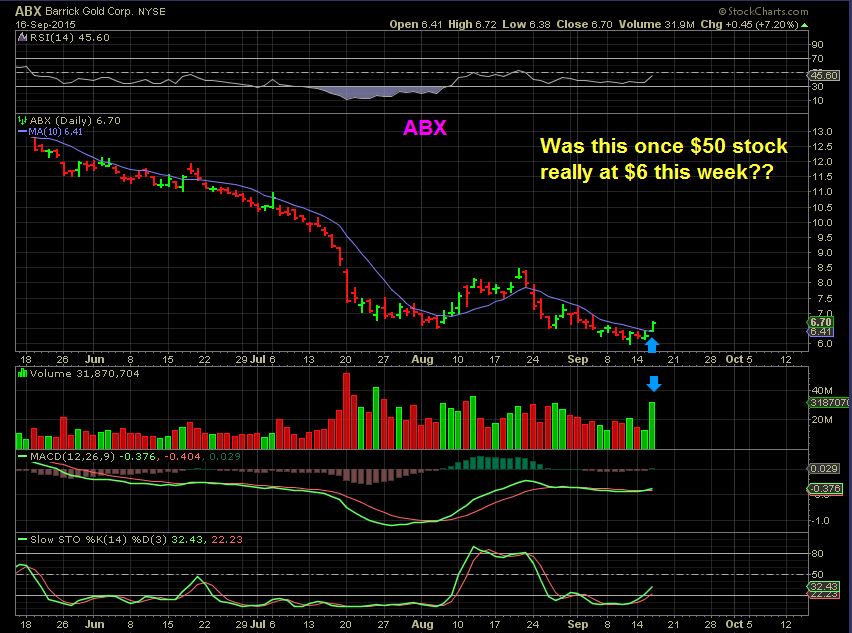 ABX – formerly $50 ,  currently at lows.