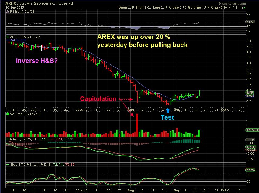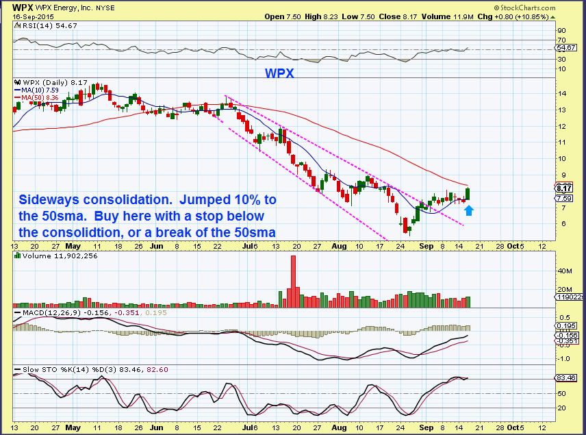 WPX – Off of the lows in Aug and then consolidated gains sideways above the 10sma. Inverse H&S?