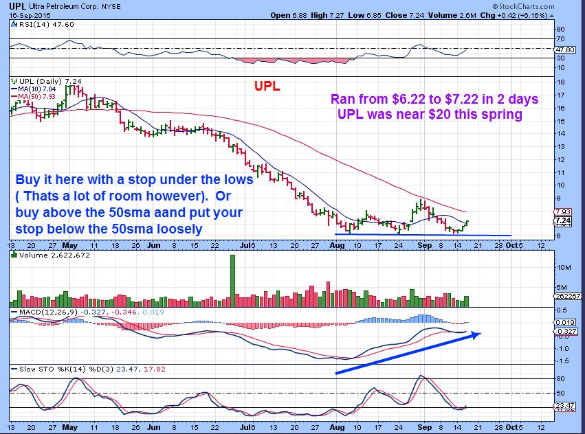 We have been expecting lows in Commodities like Gold and Oil.  Temporary or possibly even longer term lows. The timing is right, the set up is even looking good longer term , and now the move is starting to play out.  Volatility at lows is common until the move gains some traction. I think a pull back today  or after the Fed is an opportunity, as long as Lows aren’t taken out again.  If lows are not taken out,  it is time to go shopping and look at some of the stocks that jumped 10,20 30% yesterday.    They may go on sale today & even tomorrow.