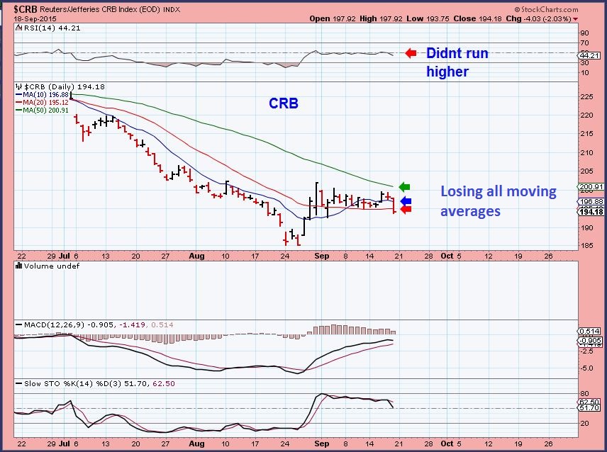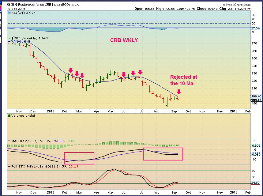 The CRB is a bit more concerning to me. This is (so far) a rejection of the 10 MA on a wkly.