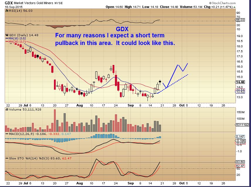 For what it’s worth Cason, I’ve just had a quick look at JNUG, GDX/J on my 1 hour charts and in each of them it does look like we had a nive impulsive 5 wave move up into the highs on 18 Sep. That would strongly suggest that once this minor correction is over there should be at least one more impulsive leg to the upside. It does look like the correction has a little further to go…not a lot but just looks like there is a little more work to do on the downside in the very short term. I’m thinking around 8.40 JNUG, 13.8 GDX and 20.1 GDXJ would look ideal from a technical perspective but I personally would want to see some evidence of support developing there before commiting capital. But just my personal view.