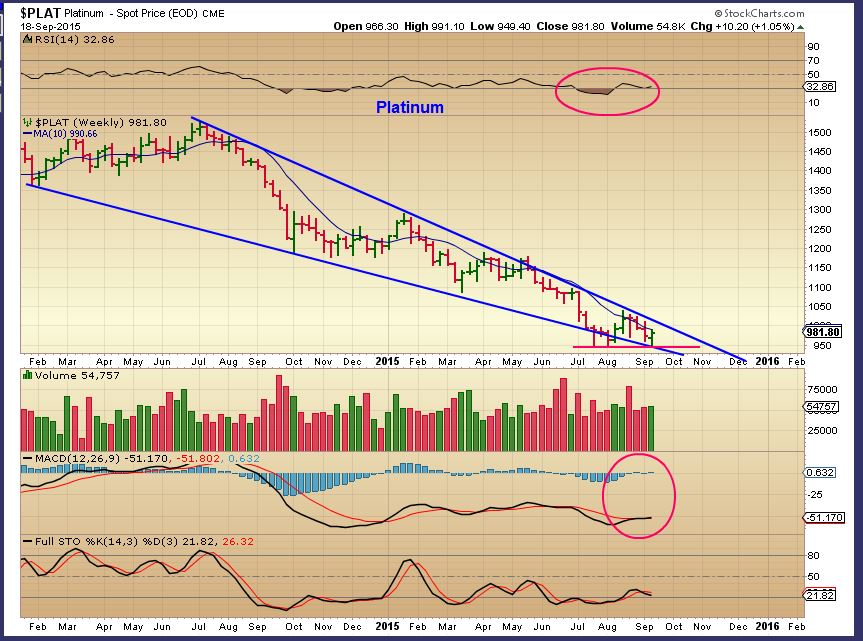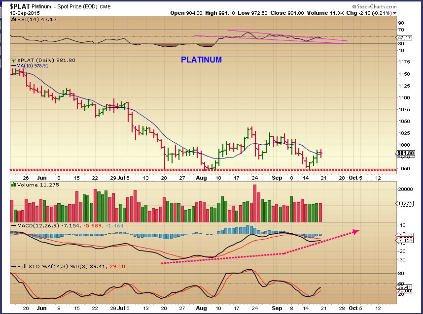 Platinum Daily – This chart also looks like a bottoming chart with good divergence so far.