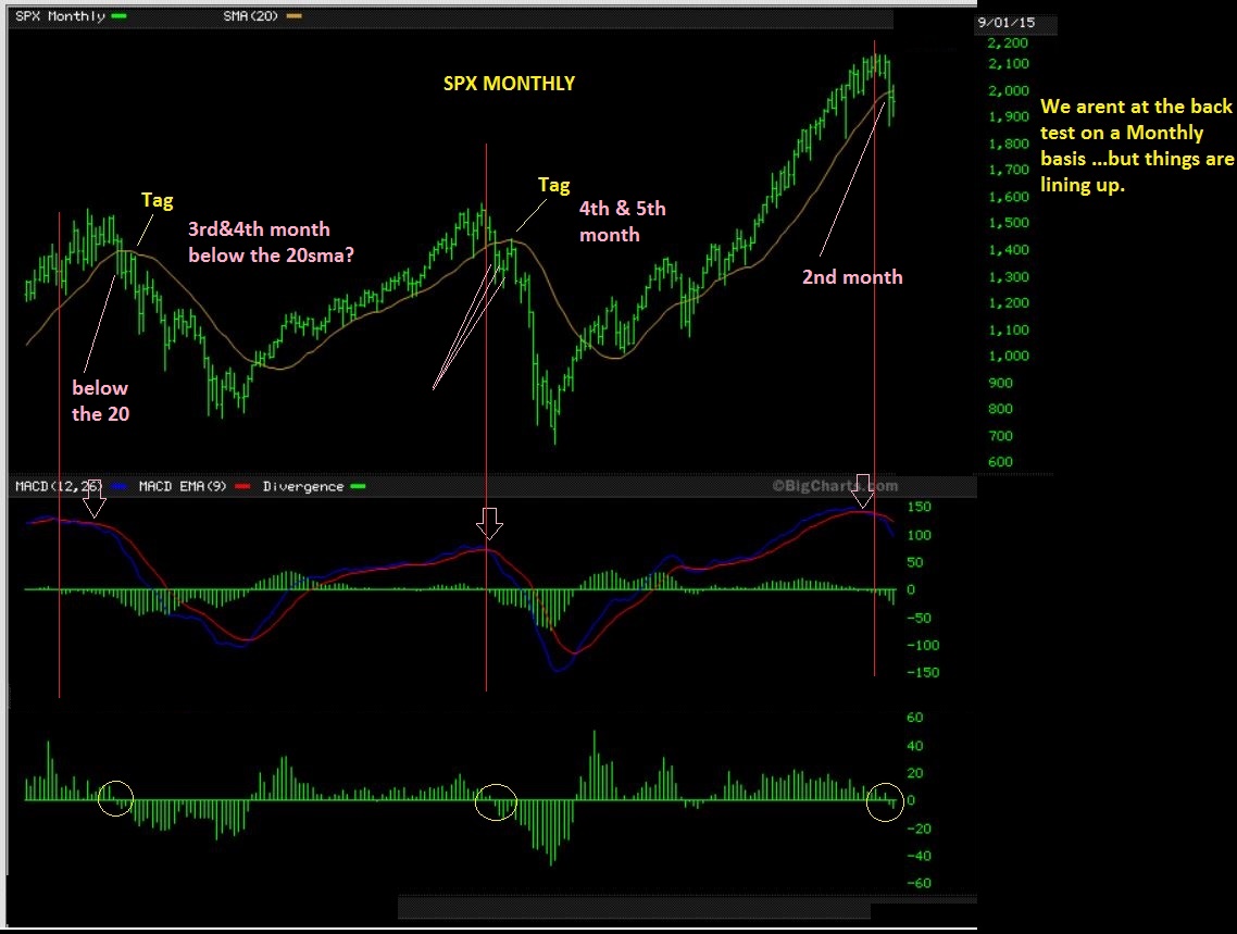 I also wanted to go back to the Monthly chart of the SPX, because I mentioned that we may have a shorting opportunity on a back test in the future. I dont think that we are at THAT point yet. We are at a shorter term short, maybe testing recent lows.
