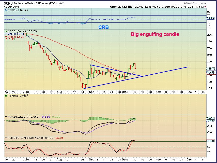 I was a little surprised to see the dollar down and also see the $CRB, $GDX, and $OIL down too. They’ve all had nice moves out of their lows, and now it looks like it may be the moment of truth. Time to see if it was just another bear market rally or could it be the start of something more?