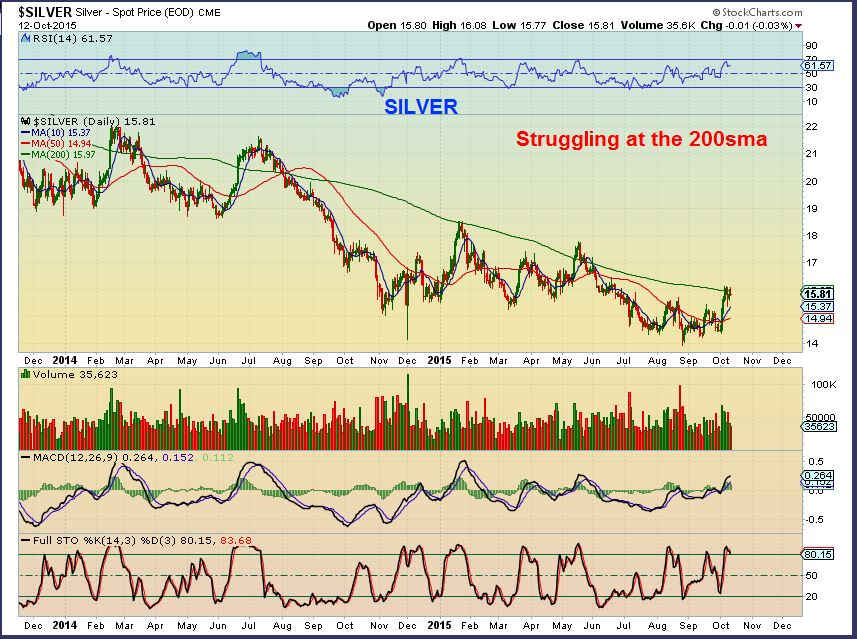 SILVER – Silver continues to struggle at the 200sma, but was only down 1 penny.