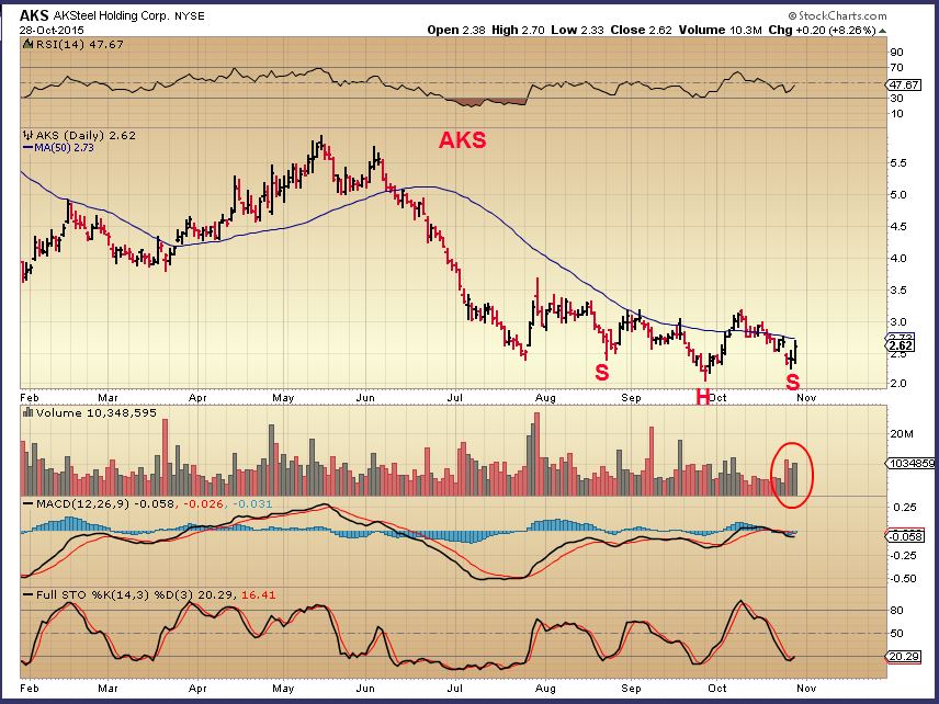 AKS – And some commodities are looking like they are forming bullish bases and set ups. See MTDR, MDR, X, AA, FCX, (Vale?).