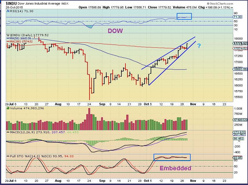 I just wanted to point out that The Dow & SPX ( Dow shown below) look like they have possible wedges, but the NAsdaq did too and it broke to the upside and negated it. The dow held on to the 200sma and looks bullish , so lets look elsewhere for clues.