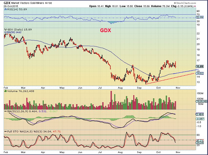 Gold looks like it’s headed down for a bit along with the miners. Maybe 14-14.50 GDX might be a good entry.