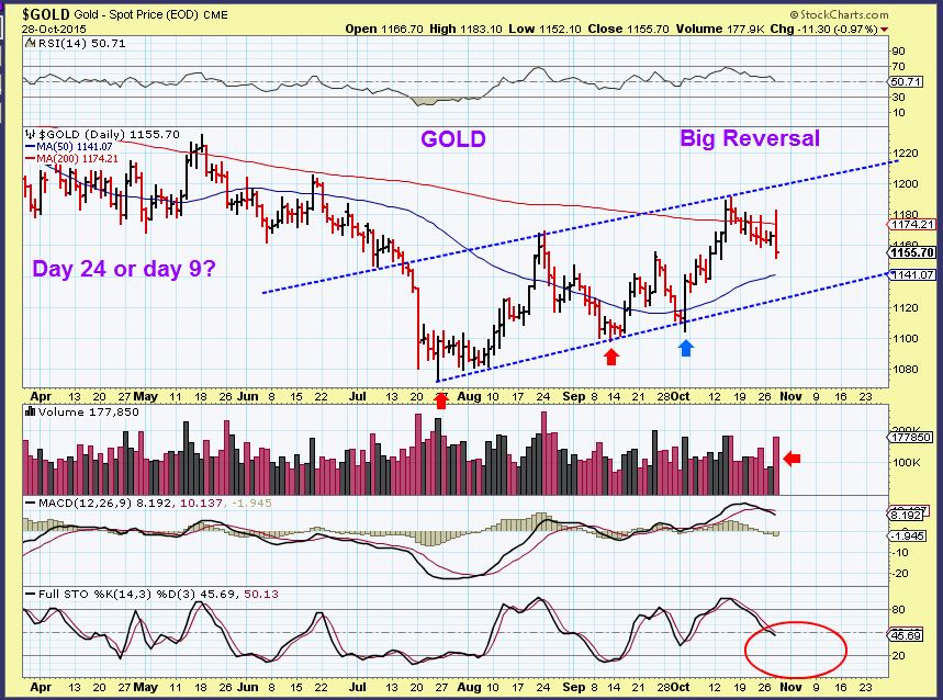 GOLD -What I wrote on this chart Day 24 or day 9… I do not know what I was thinking – lol. Sorry. I THINK I meant that we had a day 9 high or a day 24 high, depending on where you count a DCL.