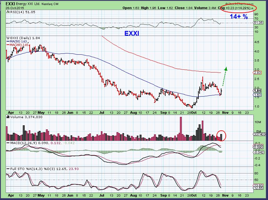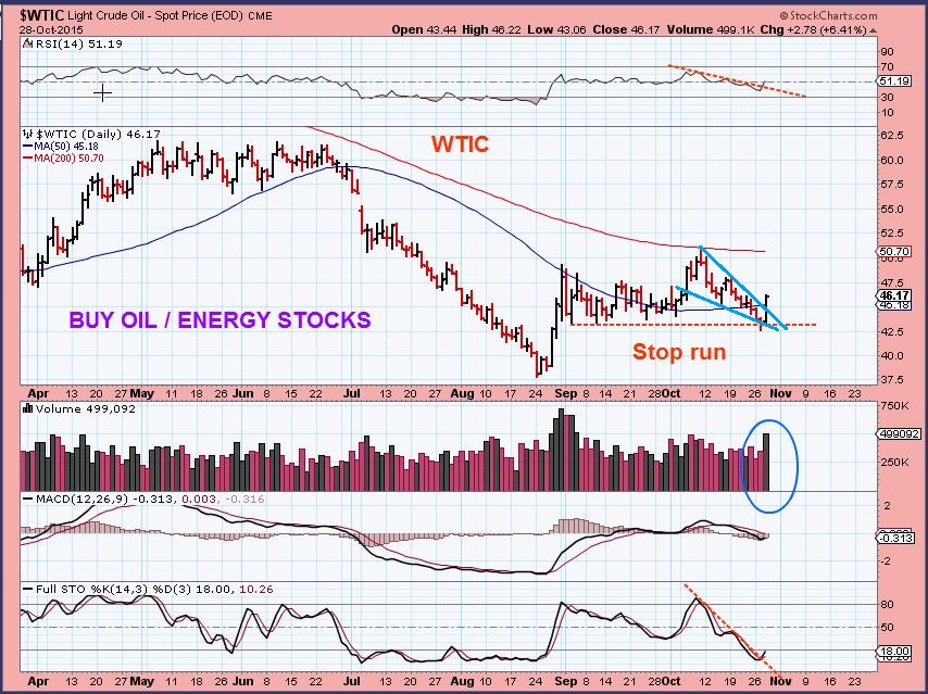 $WTIC – And OIL CERTAINLY didn’t care about the Dollar. We got our ‘stop run’ and that was a nice explosion, many oil & Energy stocks burst forth higher too. I’ll post a few charts of interest at the end of the report. This is a high volume bullish break out.