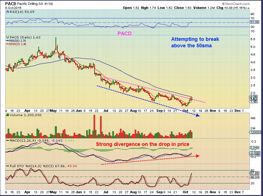 For example, this was SGY when I pointed it out. It ran from $4 to $7 in August/September and then pulled back after hitting resistance at the 50sma, forming an inverse H&S. When it broke above the 50sma , it was a buy around $6.