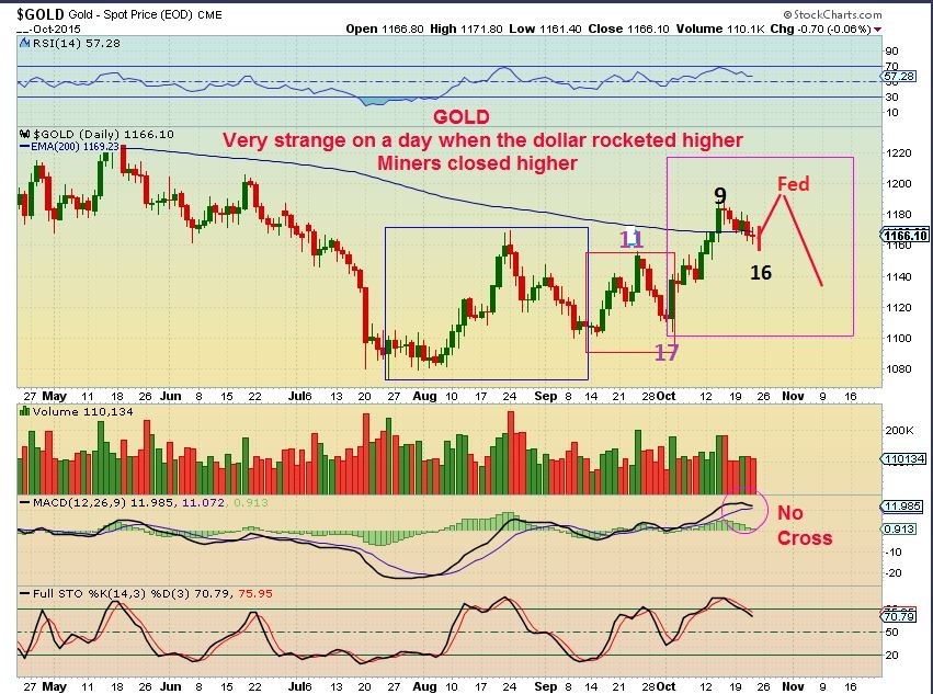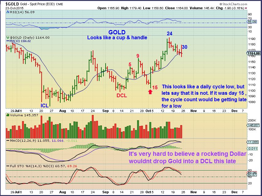 2.  That Big reversal day on OCT 2 looks like a dcl to me in Gold & SIlver, but For this chart  I want to do the  Cycle count as though it is not a DCL.  This way would expect a dcl soon.  Even on the FED WED MTG.  Day 33  would be FED WEDNESDAY.