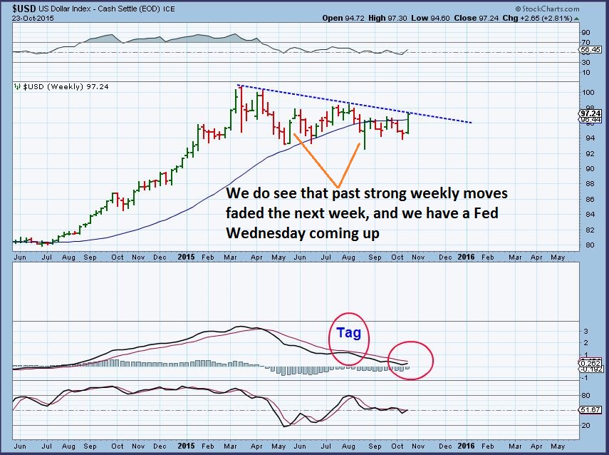 The USD WKLY – Strong move heading toward the Fed Mtg. Will the FED kill  or will we get a break out here?  Other strong weeks did turn down.