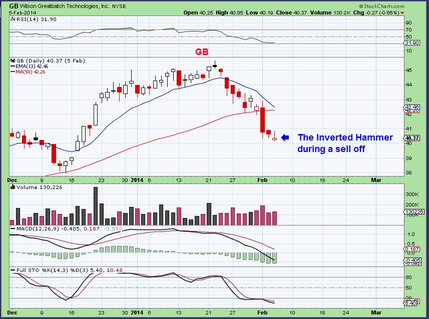 Here is an example of a company that had one after a run higher and a pullback . On Feb 5 we see that inverted hammer and if that was a sign of weakness, it would have continued lower the next few days, right?
