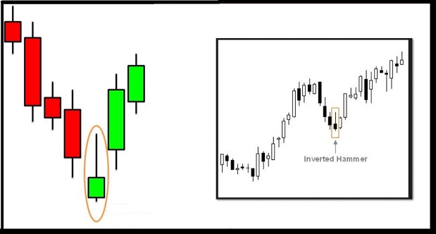 Let me show you an inverted hammer candle that can happen at a bottom. The stock is selling off and suddenly runs up during the day and then sells off back to the lows. This disappoints many, who think that it is a sign of weakness. If it moves higher the next day, it could be at a low.
