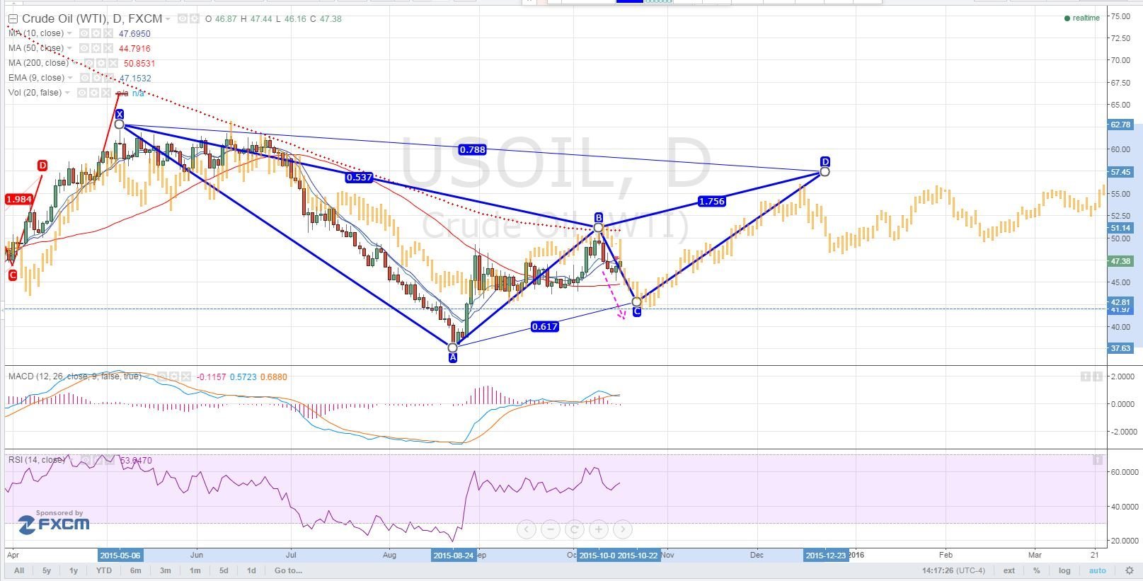 Maybe you mean this one? It had support shown, but I wrote in the report that the magenta line would be an A-B-C-D target. ( refresh)