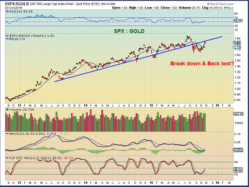 SPX regained its leadership with last weeks drop in Gold. The break down in SPX:GOLD was negated.