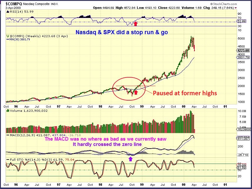 Scroll up 2 charts and please note on the Yellow Nasdaq 1998-1999 that the NASDAQ was back at former highs by Dec 1998. Important to me was to answer my own question, ” How was the TRAN doing back then, because it is lagging right now?”
