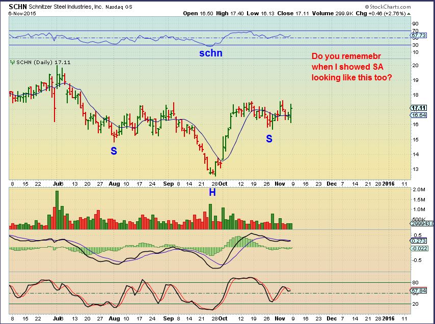 SCHN- Steel company . Compare this to my old SA chart below it. These are Bullish set ups.