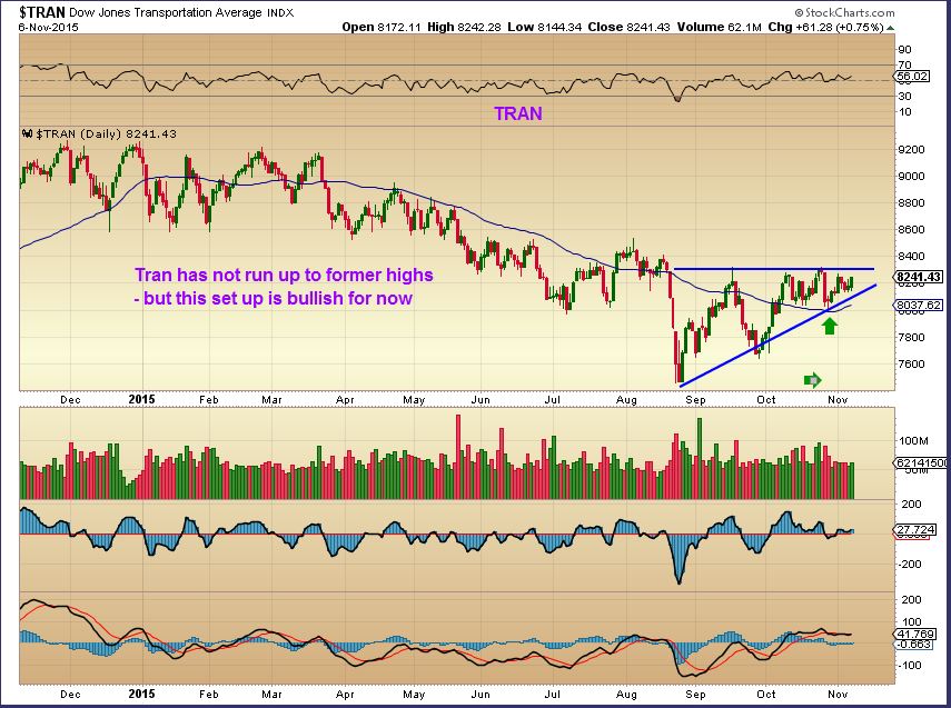 TRAN NOW – Not at former highs, so it is also lagging, but looks more bullish than not.