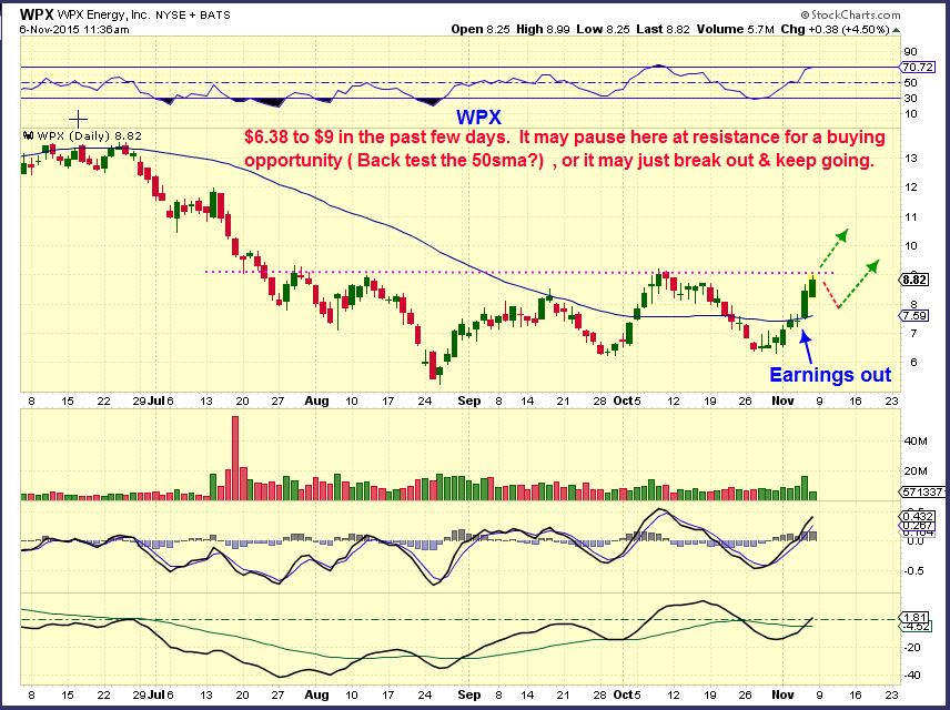 I have said in past reports that I am focused on Energy Stocks, because they do offer nice % gains, while the Miners look for a low.