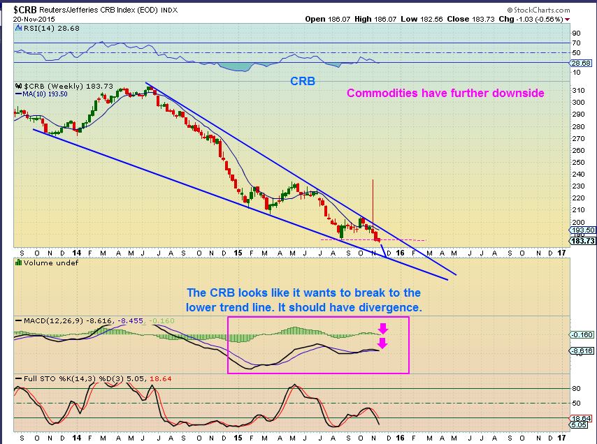 Update – No break out and now a break down. There is good divergence for the longer term outlook, but commodities have yet to find their lows.