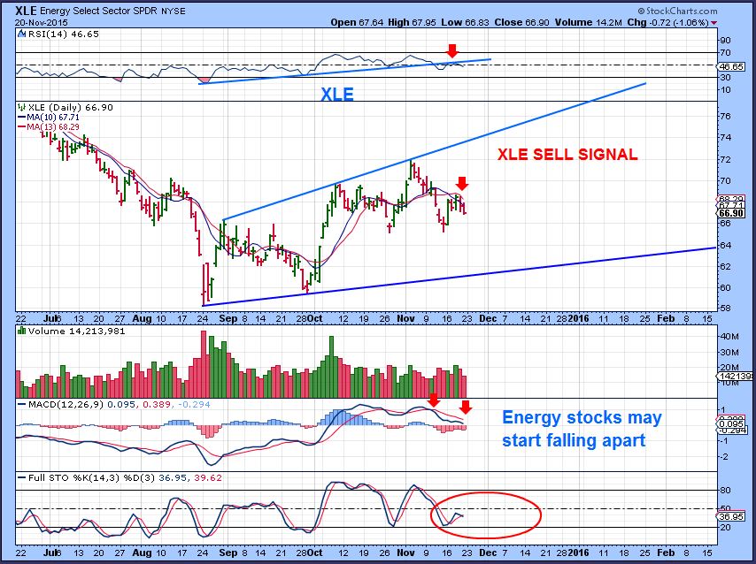 XLE – Energy stocks have held up well, but I now think that weaker ones may start falling apart now. The daily chart is weakening so this is a short term XLE sell to me if it breaks the 50sma (not shown, sorry).