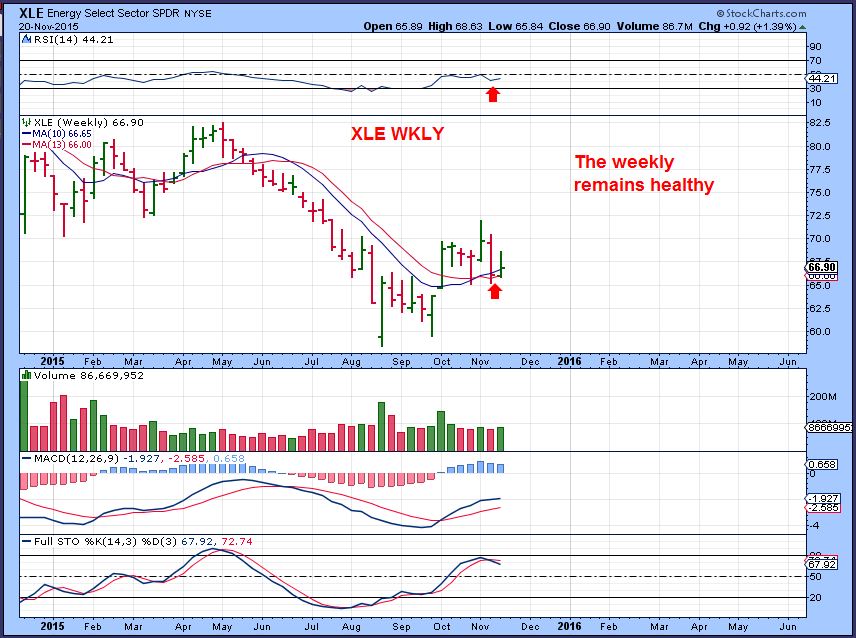 XLE WKLY – Oddly this has held up very well, despite OIL & NATGAS sell offs. It still looks fine, but I am cautious with the daily chart.