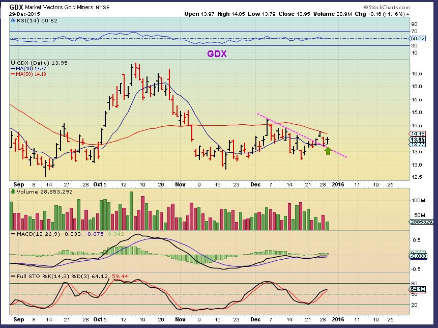 GDX lost 10 day at open, gold at the bottom rail of your triangle. What tells us, in your opinion, that we’re wrong and it’s time to eject? Trying to discount low volume time of year also. Not interested in riding GDX back down to 12.6x lows. Just another case of it breaking out to put in (at least short term) another top. We do have to stay alive to possibility of incoming DCL or much, much worse a 4th daily cycle to ultimate lows.