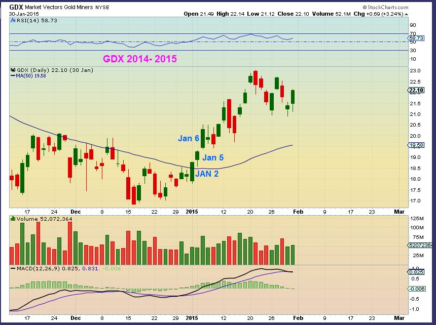 What did Miners do last Jan 2015?  I’m not saying that we will see this again with the SPX or GDX,  it’s  just a good idea to see what did happen last year at this time. We humans forget quickly.