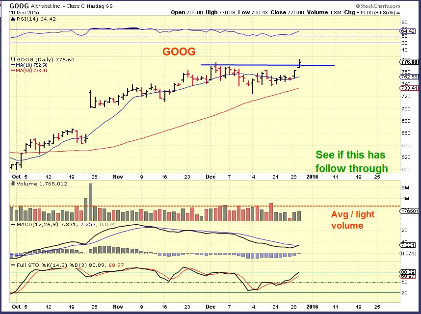 So –  I love the looks of the GOOG, FB, and AMZN charts.  FB & BABA are a buy right here on the 50sma actually.  Those charts look like bullish consolidations and break outs. Other areas of the markets seem questionable, and heading into the new year, things may change quickly in January  ( As you will see later in this report).  That doesn’t mean sell everything, but use stops or trailing stops if you choose to buy these break outs.