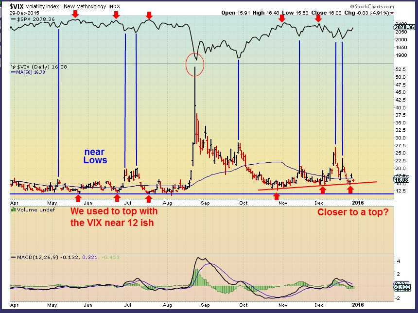 As this trading year wraps up, I plan on using the weekend report to discuss some ideas of what we may expect in 2016. We have 2 trading days left this week and then it’s on to 2016. Lets review what the charts are saying…