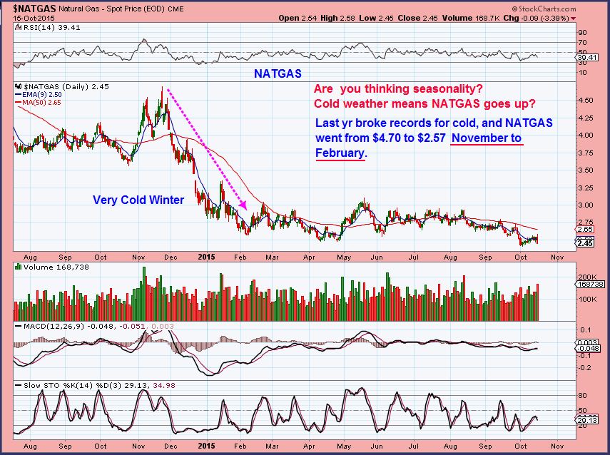I am being asked about NATGAS from time to time. In October NATGAS looked ugly. People would write to me and say that I should turn bullish on NATGAS because winter was coming. I pointed out that The biggest drop came in Nov-Feb of a very cold winter last year.