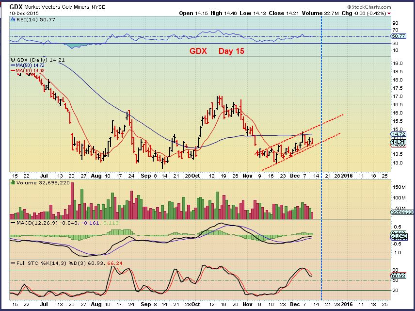 Silver drops to new lows and this is GDX ( Day 14 1/2 cycle low?).