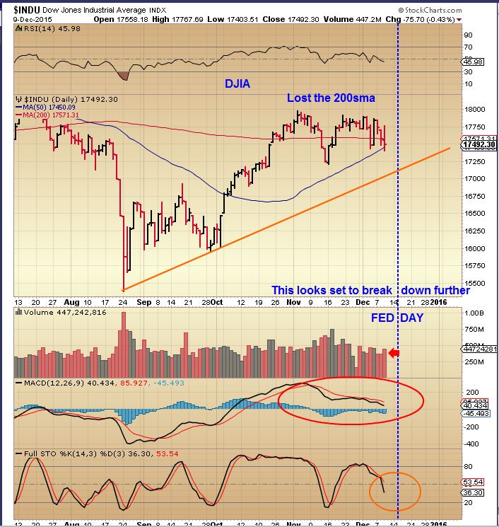 That 10 ma weekly support has been breached ( so far) too. Notice that this never happened in the strong bull run higher from July 2014 to March 2015.