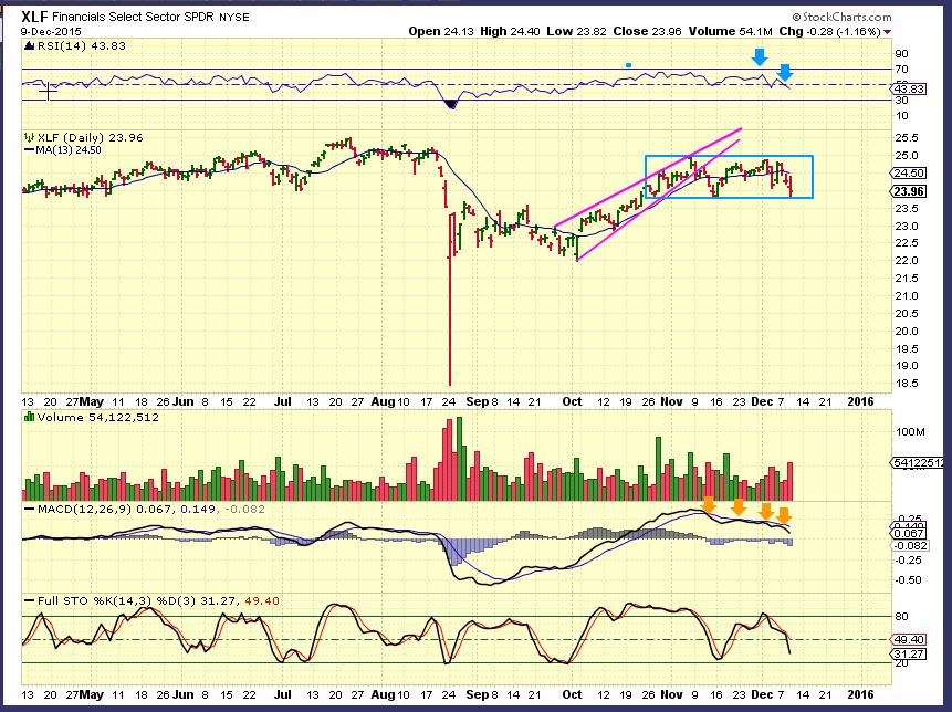 XLF & BKX Banking – Financials are weakening ( See Goldman Sachs) ticker GS & RF