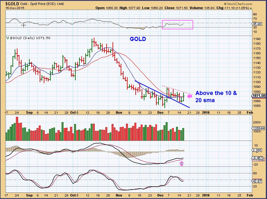 GOLD with CYCLES – This looked very promising at the end of the Fed Wednesday. Re-gained the 10 & 20sma on a fed day? And Miners all responded strongly higher.