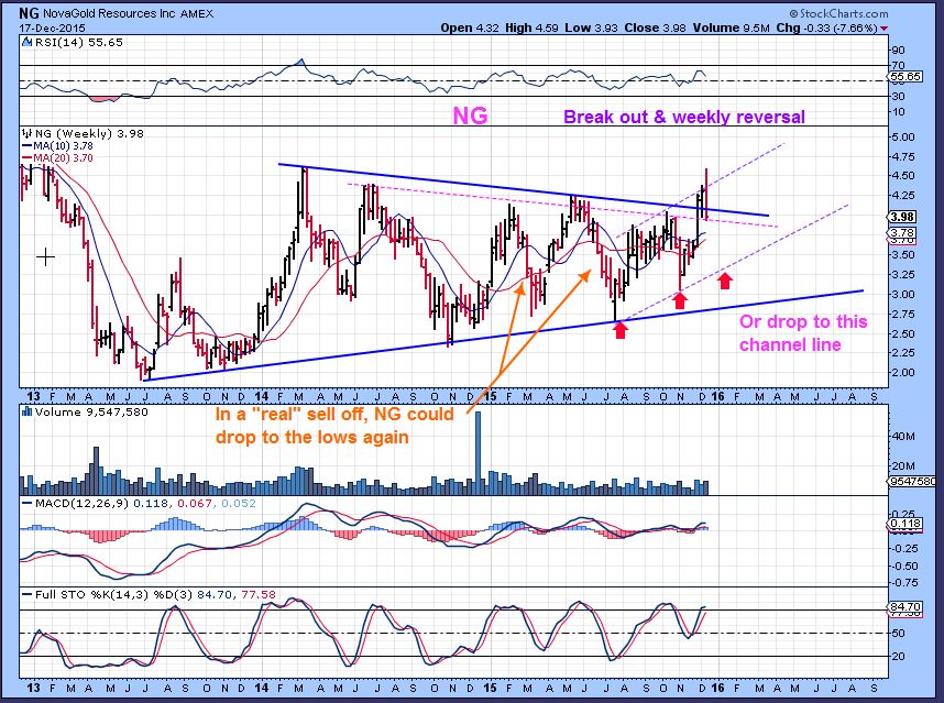NG – Another favorite performer.  It Broke out on Tuesday and followed through on  FED WEDNESDAY. Thursday it gave it up. We may be forming an up trending channel in NG, but that still could include a drop to $3 -$3.25 .  The higher lows from 2013 to now is bullish with Gold at new lows, but pullbacks are evident along the way.