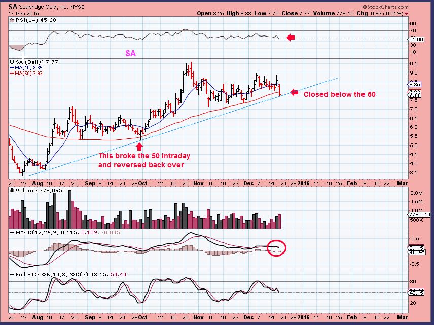 My favorite Miner ( SA) closed below the 50sma for the first time since early Aug. The volume increased and I have to wonder if Miners will get involved in a correction.  The strong ones can remain healthy, but a correction is still an area that one may want to get out and re-enter positions later.   looking at SA,  The MACD is weakening. The MACD showed similar  weakness  in Sept , but price  didn’t close below the 50sma then.  I am getting cautious.