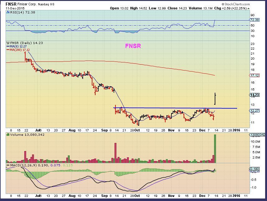 Some set ups failed –  See YHOO & CIEN.  This set up  FNSR did a quick shake out and then Popped.  SO its getting very selective in the stock market these days. YHOO was a decent set up & it failed. CIEN was a decent set up & Got crushed.