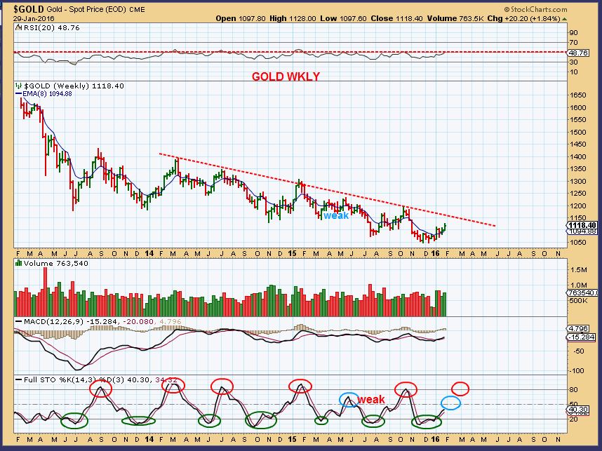 GDX WKLY – Shake out and we are pressing against a down trend line. so early in the ICL my middle indicator is already at the zero line. Bullish in my opinion. Also oversold on the weekly stochastics. I would NOT Be shorting this, unless it was just a quick trade.