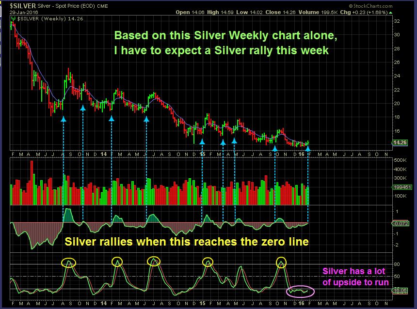 SILVER WKLY – This could be ready to POP this week. Stochastics is STILL oversold.