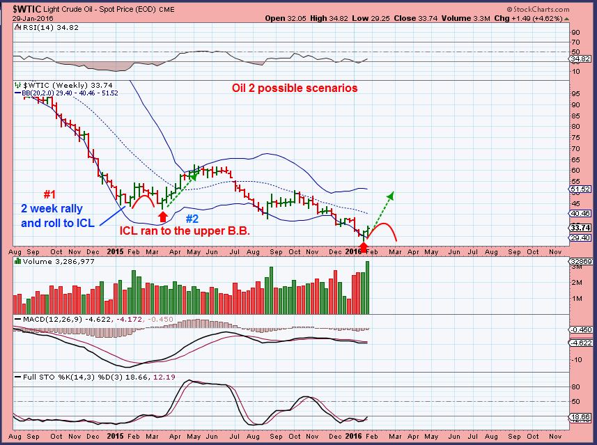This move could look like this red arc and roll over to $26 if this is not an ICL in Oil. The Green arrow is if Oil put in an ICL. Yet to be determined, but energy stocks are very trade-able right now for short term traders. More on that later.