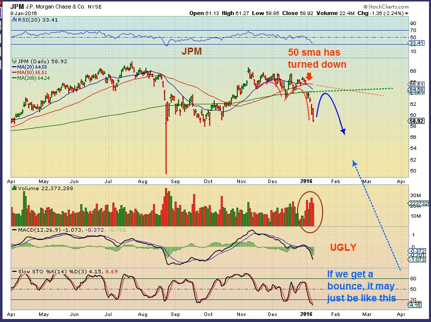 J.P.Morgan – This is breaking down on volume, along with GS, MS, etc. This could bounce to test the 200sma.