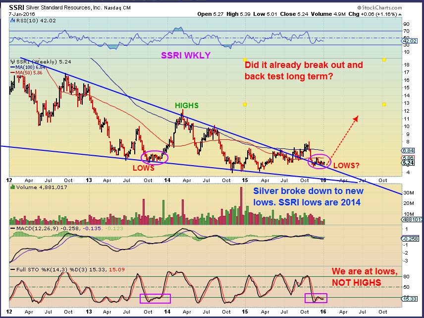 SSRI WKLY – That was an ugly drop in October, but it may just be back testing a break out from its 2015 run of $4 to $8. At least when Silver broke to new lows in December, SSRI held up.