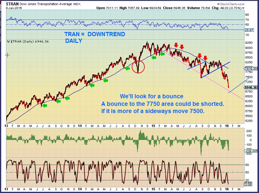Notice in 2008 the market made new highs and the lower indicator didn’t follow. That indicated a weak move, and I saw that happening in 2015 ( I still do). Now with each bounce I can check this for strength ( The problem is that it is a weekly chart, so we need a 2 or 3 week bounce first).