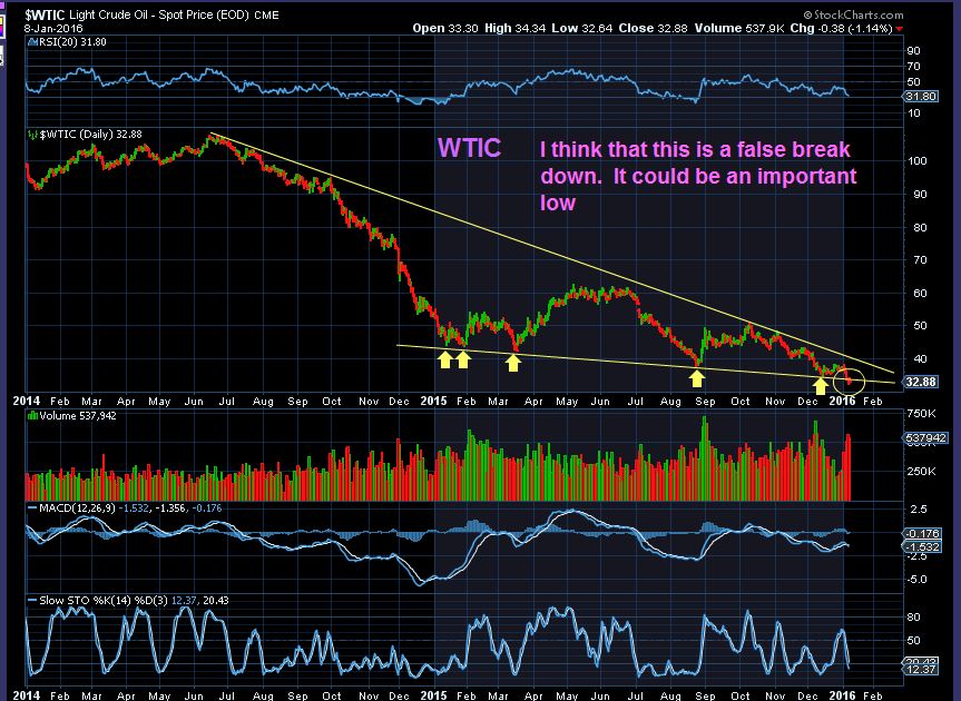 WTIC – We broke below on Thursday & Friday, but this may be a throw over. A false break down. I wrote “important low” a little prematurely, since we need to see proof of recovery or this may be just another dcl.