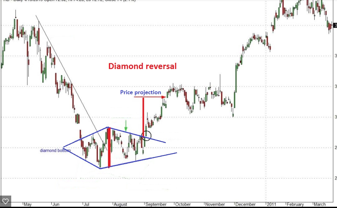 This is an example of a Diamond bottom that broke higher.